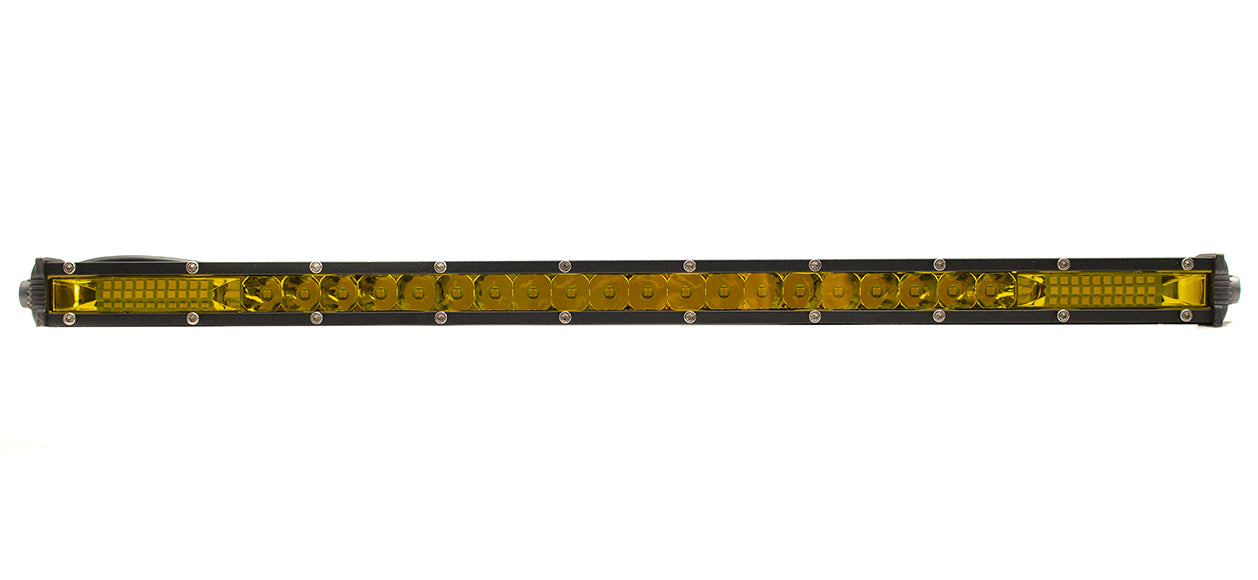 This amazing 20 inch Super Slim Amber LED Light Bar is the perfect fog cutter to get drivers through foggy and dusty road conditions. Its amazingly small size and light weight make it versatile for mounting in locations virtually anywhere. It uses Golden 3000 Kelvin colors to battle reflection that white light can cause in difficult weather conditions.