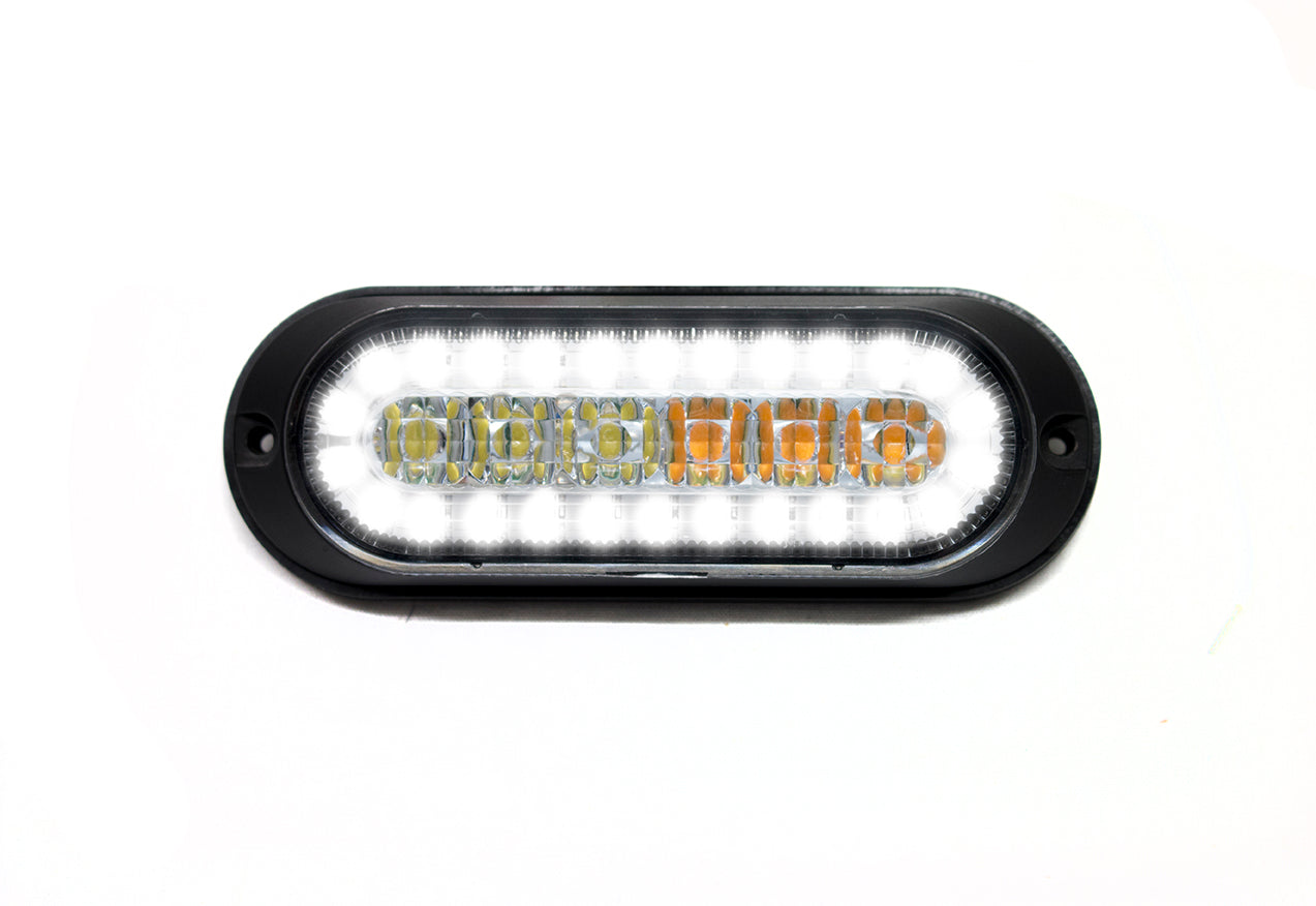 - Dual Function Ultra Thin Flush Mount Amber Flasher Strobe With White LED DRL function - SAE Certified J595 and J2087