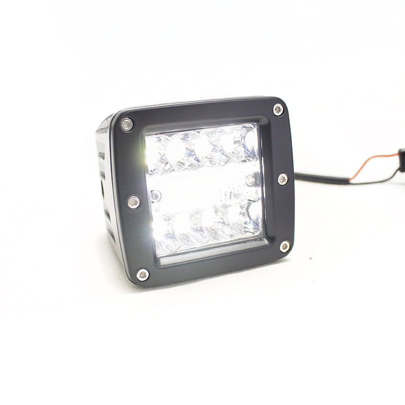 ECO-LIGHT LED High Power CUBE Style Auxiliary Lights (Sold as Pairs) LED Power: 48W. Dimensions: 3.0 inch. Operating Voltage: 10-30V DC. 16pcs 3w high intensity 3030 LEDs. Optional Color: Black, White. Color Temperature: 6000K. Material: Diecast aluminum housing. Lens material: PMMA.