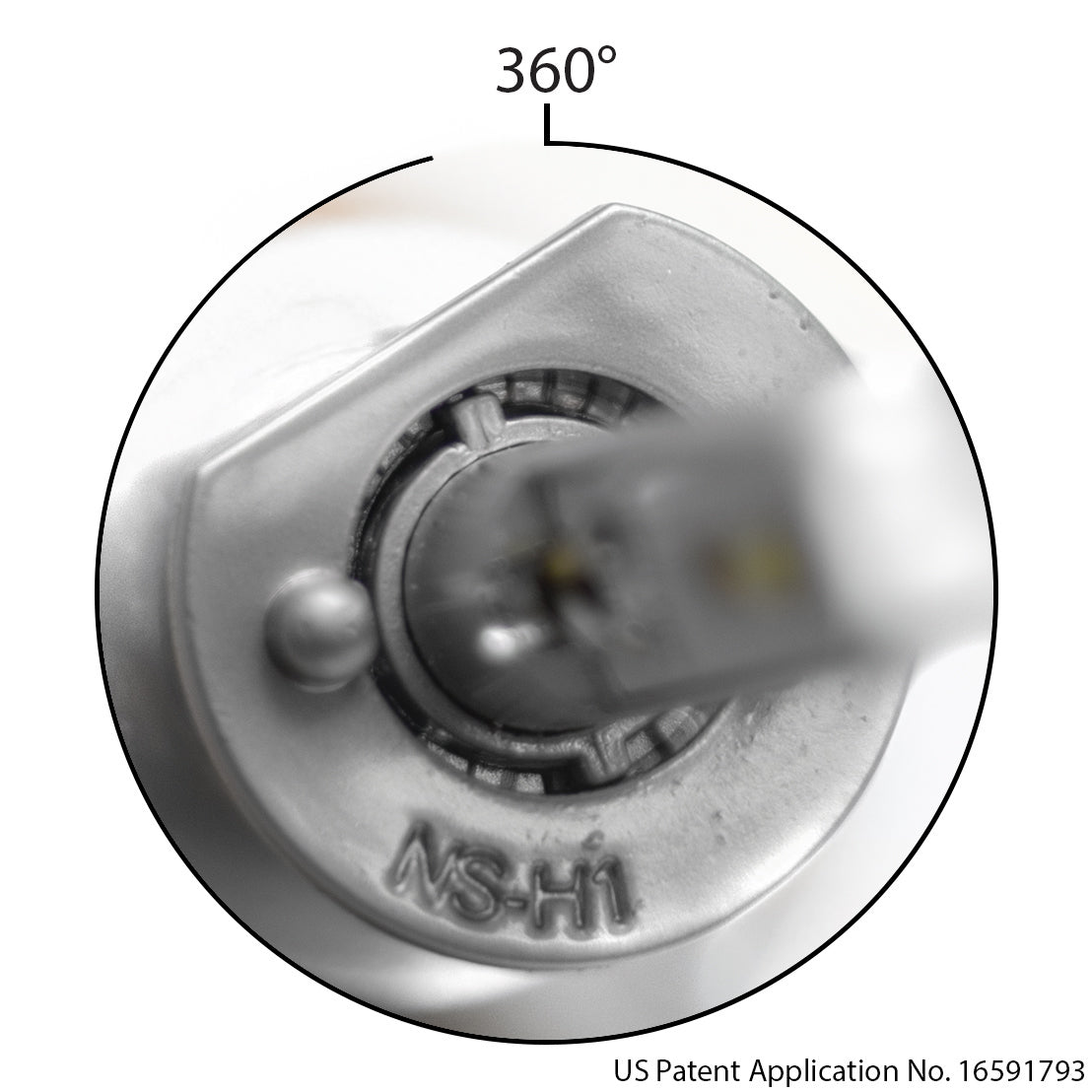 Request More Product Information: H1 GEN4 LED Headlight Conversion Kit with 360 Ratchet Style Clock Able Base, Focus Optics, and Copper Stranded Rope Heat Sinks Race Sport Lighting H1-G4LED