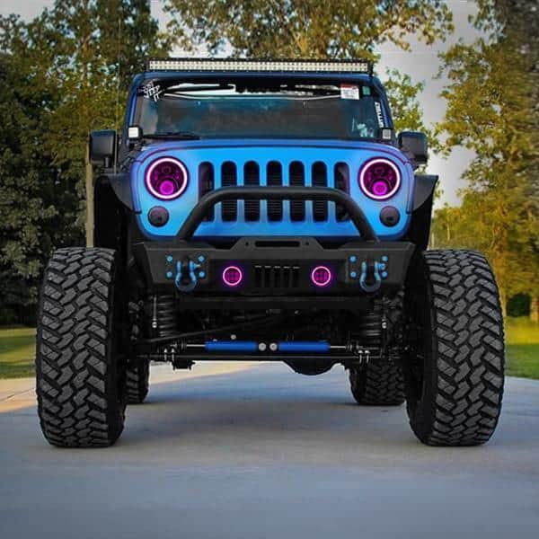 Jeep Wrangler 7 inch Headlight and 4 inch Foglight ColorSMART Combo Complete RGB Multi-Color kit - Smartphone Controlled with 2 Headlights and 2 Foglights.